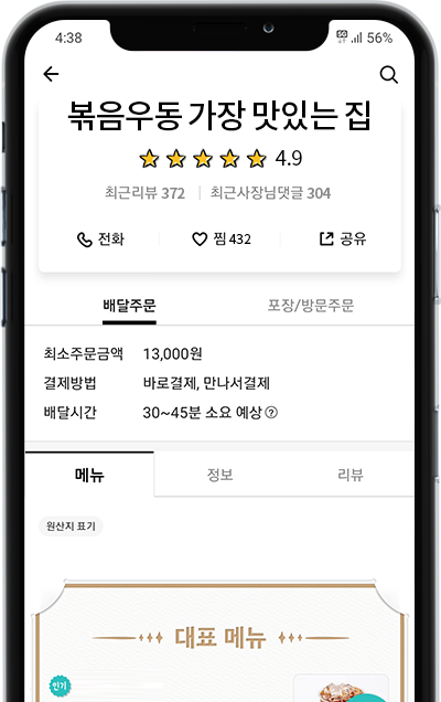 배달 주문점심에는 볶음 우동으로!